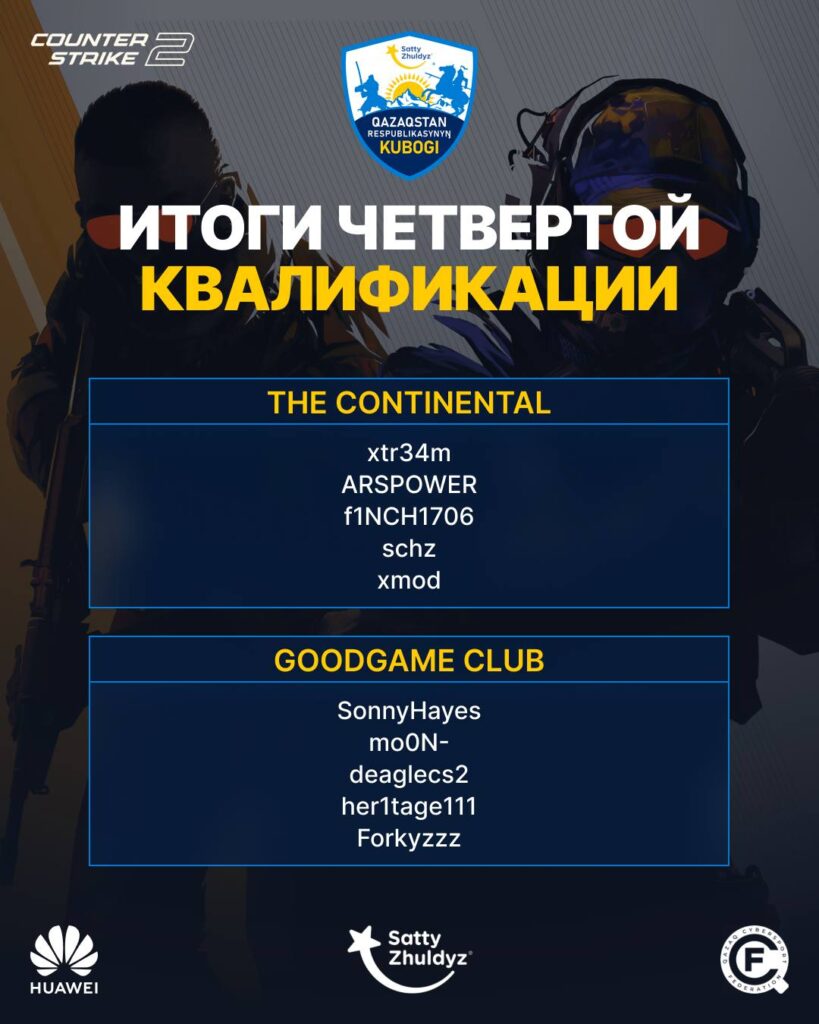 SATTY ZHULDYZ QAZAQSTAN RESPUBLIKASYNYN KUBOGI 2025 турнирінің CS2 дисциплинасы бойынша соңғы төртінші іріктеу кезеңі аяқталды.